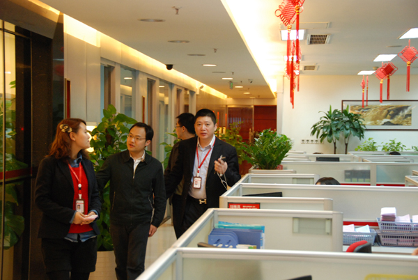 2013年2月22日,共青团渝中区委书记罗毅、副书记陈刚一行深入重庆诚泰实业(集团)有限公司调研共青团工作。诚泰集团董事长陈成宽对罗毅书记一行的到来表示了热烈的欢迎,并陪同罗书记一行参观了公司办公区域和荣誉室,同时还向他们详细介绍了集团公司概况及人才队伍和党工团建设。