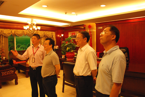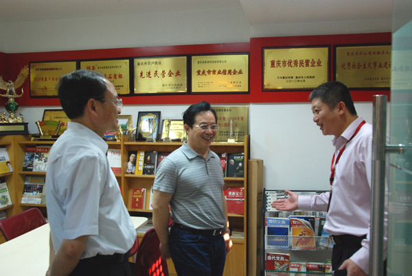 姜主席一行在重庆市政协委员、重庆市温州商会会长、重庆诚泰实业集团董事长陈成宽陪同下,先后参观了公司荣誉室、培训室、会议室、信息自动化指挥中心和办公区域。在座谈过程中,公司董事长陈成宽汇报了集团的总体概况和发展思路,详细介绍了公司在党工团建设、创先争优、回馈社会等方面的情况。
