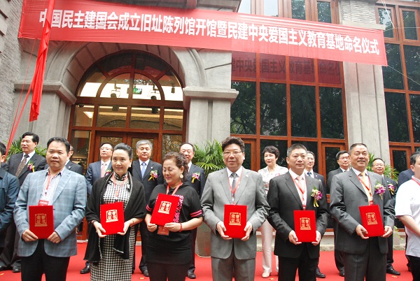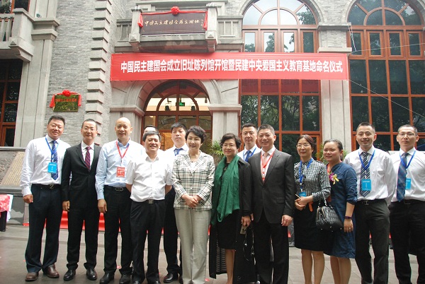 5月19日上午,中国民主建国会成立旧址陈列馆开馆暨民建中央爱国主义教育基地命名仪式在重庆市渝中区白象街复建后的西南实业大厦隆重举行。全国民建中央主席陈昌智,副主席宋海、周汉民、吴晓青,中共重庆市委常委、统战部部长宋爱荣,重庆市人大常委会副主任张定宇,重庆市政协副主席彭永辉,浙江省政协副主席、民建浙江省委主委陈小平,四川省政协副主席、民建四川省委主委陈文华,云南省副省长、民建云南省委主委高峰,民建中央原副主席程贻举、民建市委原主委卢晓钟、中共渝中区委书记唐英瑜及民建中央、中共重庆市委、市人大、市政协、市委统战部、市级各民主党派、工商联、市规划局、市工商局、部分民建兄弟省市及职教社、中共渝中区委、区人大、区政府、区政协、区委统战部的领导同志,民建重庆市委领导班子全体成员、各区县组织主委、老会员代表、民建先贤亲属代表、捐赠会员企业代表以及项目建设单位代表等120余人参加了揭幕仪式。